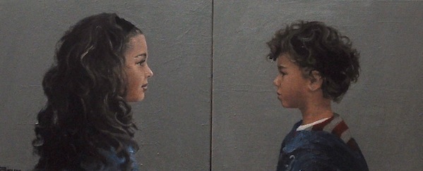 Portret Indira en Jadon, zus en broertje 120 x 40 cm